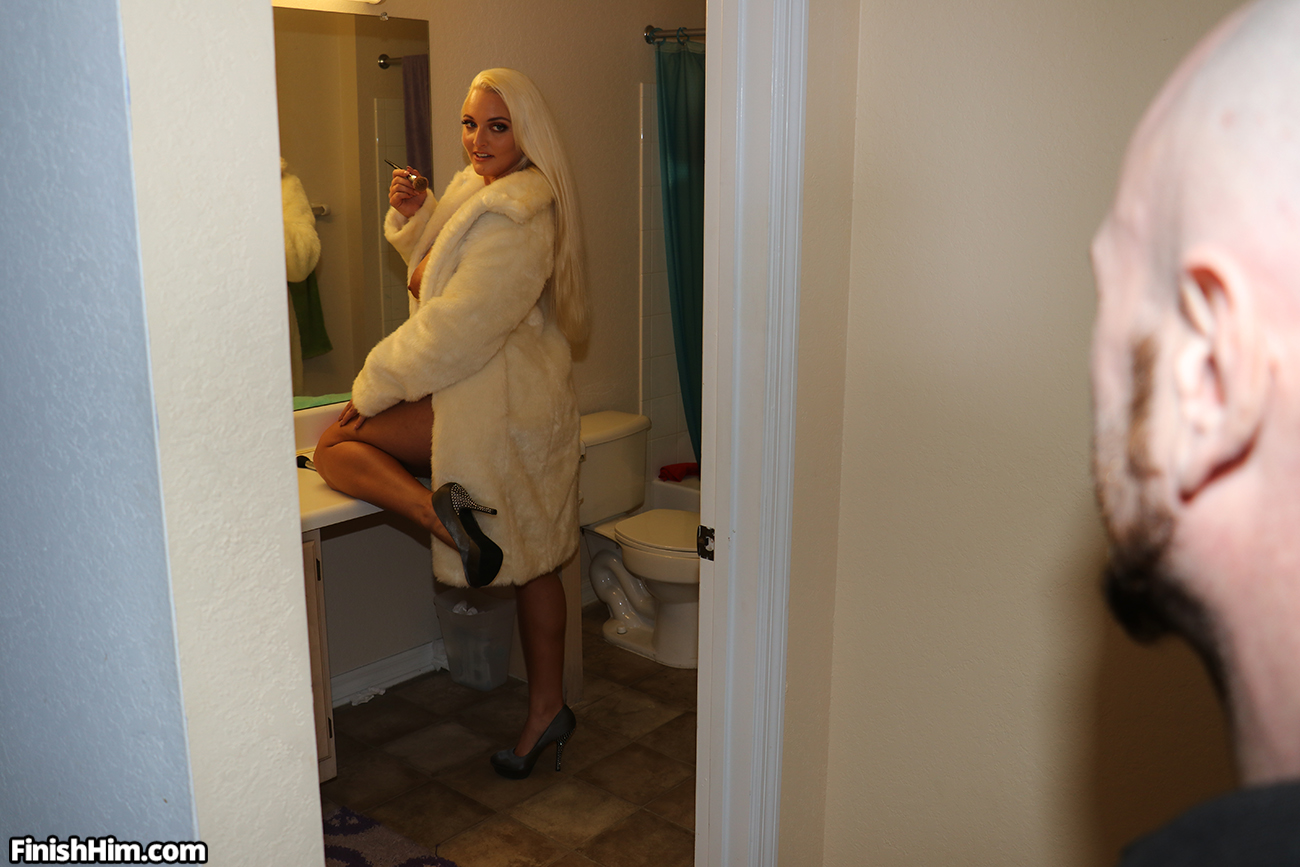 Macy Cartel is late and now she has to give her angry boyfriend a payback. Fortunately the naughty blonde babe knows exactly how to do that, so she grabs that dude's big-sized dick and jerks it really slowly until he releases a big cumshot for her. Se handjobs his cock in her fur coat!