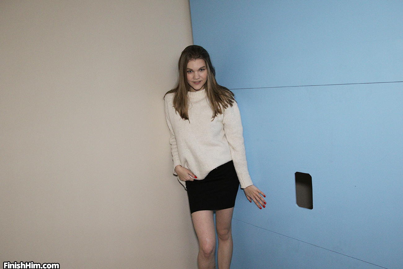 Czech babe Amanda Clarke has got a filthy mouth but lucky for her she doesn't mind at all. In fact she gets quite turned on when she see's a monster dick poking through the gloryhole bathroom. Instinctively she sucks on it, and gives an incredible blowjob while getting blasted in the face and tits.