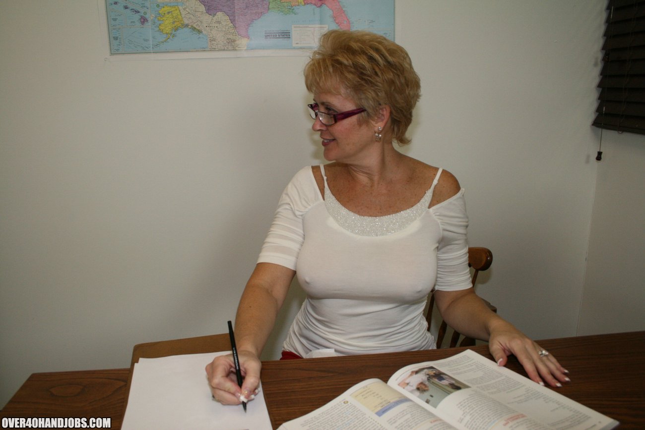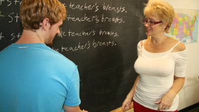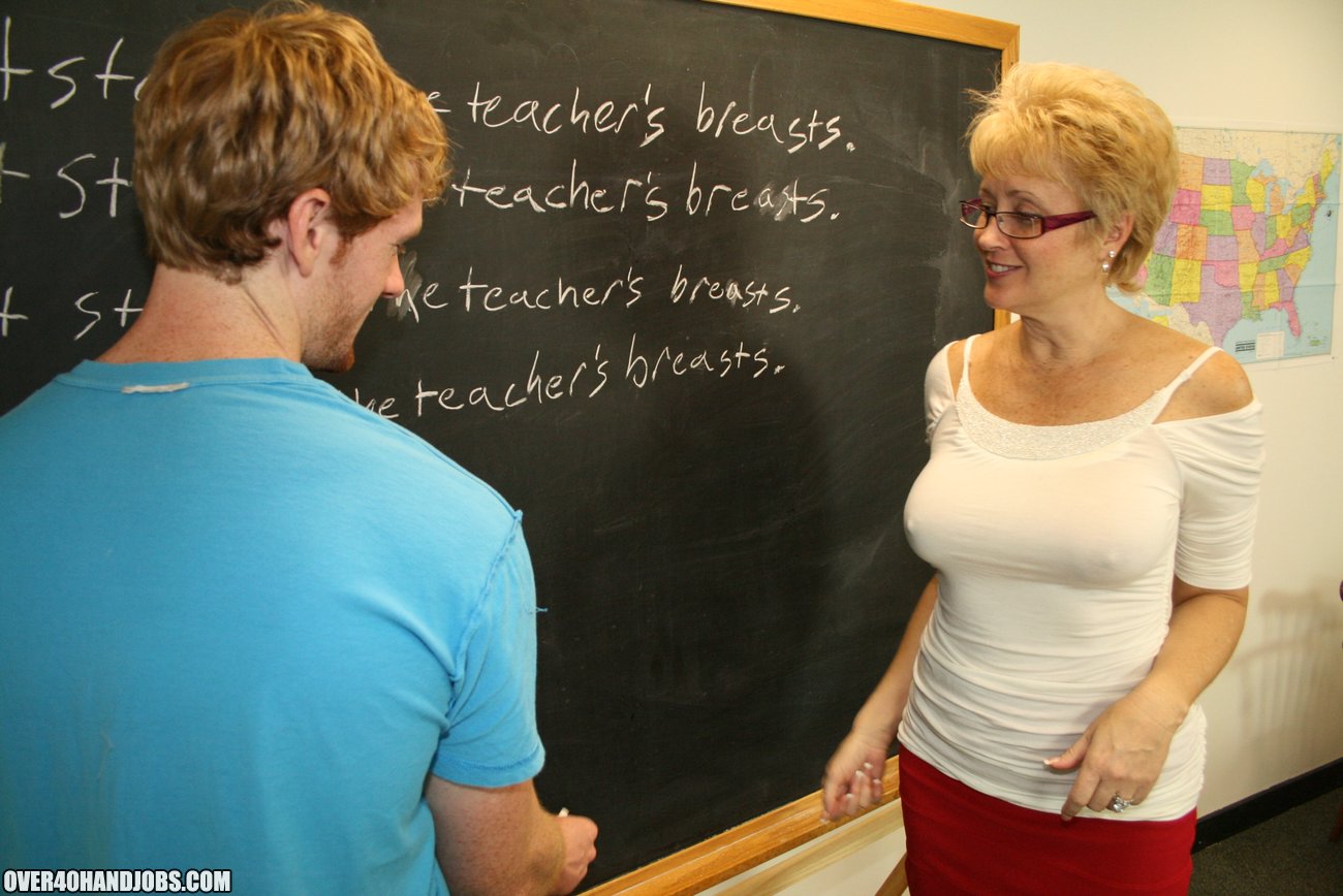 Young Jonny has misbehaved in class again, this time staring at Mrs. Tracy's gigantic juggs. The perverted teacher makes him write on the board, but when this punishemnt doesnt work, the jerks his cock only to bring him to the brink of orgasm them slapping him on the head.