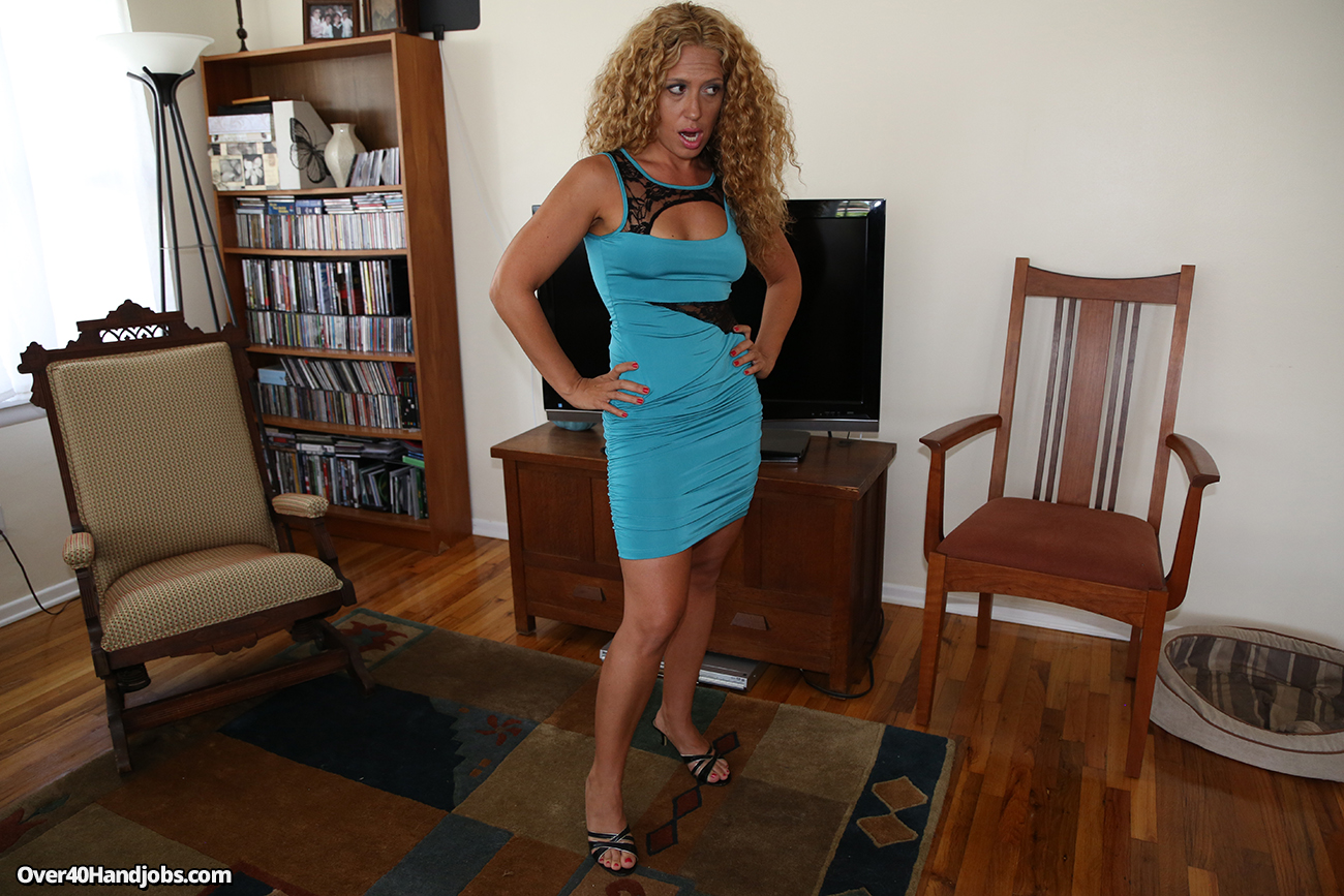 Most people would get in big trouble for being tardy but not Jeremy, instead he gets a mind blowing handjob from his hot step-mom. This POV handjob action takes place right in the living room where the gorgeous curly-haired MILF strips naked and kneels before her horny step-son.