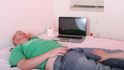 Brad is back at home after a hard day at work. The only thing that can help him relax is masturbating. The exhausted dude is lying on his bed touching his erected boner, when suddenly he falls. And then, his ultimate fantasy seems to turn into reality. Caroline Pierce, his dreaming handjob girl comes into the room and takes control of his big-sized boner. The redhead milf strokes his dick and makes him release all the daily stress as well as his cumload.