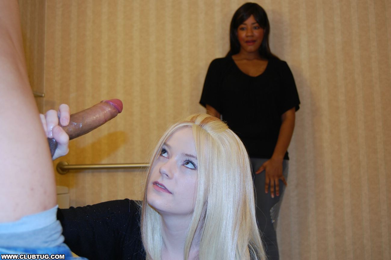 Tiffany and Calra and best friends for life. They always do dumb things. This time they want to take turns jerking off a big cock together. They've never done that before. Carley and Tiffany jack off a huge cock together but when is is about to nut, its Carly who gets the massive facial.