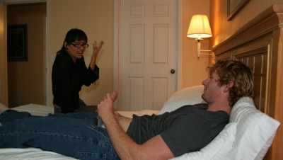 Milf Angie Niore scolds Joey for not writing his class paper, but Joey has better things in mind, like jerking off his large cock. When Joey starts pulling his pud, the horny milf gets curious and starts jerking it for him.