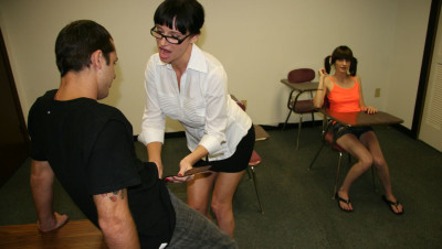 When teenage delinquent Chloe is busted for jerking off boys in class, her angry step mom Angie Noir is furious and tells her the only way to be punished is for the teen to watch as she sucks and slobbers on a giant dick, right in front of the teen. Chloe watches in disgust as Angie gets a huge facial.