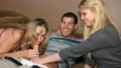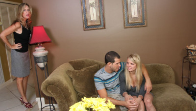 Teen babe Stella Banxxx loves her new Bf Jimmy. But things get out of hand when they visit Stella's step-mom Jodi West. Jodi is immediately turned on by the young stud, and proceeds to whip out his dick and start sucking on it. When Stella catches them things get even crazier.