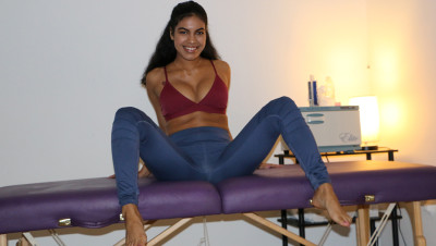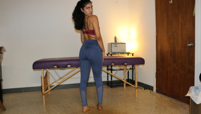 Maya proves yet again the is the ultimate handjob queen when her friend Mike stops by for a full body rub down. Maya knows that a full release handjob is critical to the reduction of stress and she focuses all her attention on his throbbing dick. Its obvious when his dick is fully erect under the towel. Maya reaches in and starts tugging!