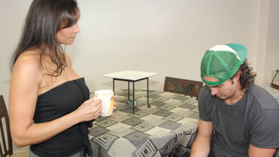 When poor Johnny cant concentrate at school, he tells his step mom he is having a problem with getting erections all the time. The perverted Raven LeChance tells him he should just "rub one out". Shocked at his cock size, Mrs. LeChance decides to jerk his cock for him instead, making him nut all on her face.
