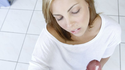 Teen Krystal Banks always slacks off on her job. When her boss comes home to find the house a mess, the only thing this teenage slut can think of is to get on her knees and jerk off his monster dick to get of the hook. She pulls out his throbbing cock and milks him clean on her face.