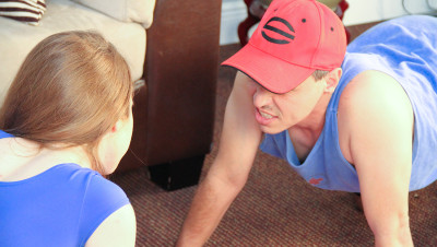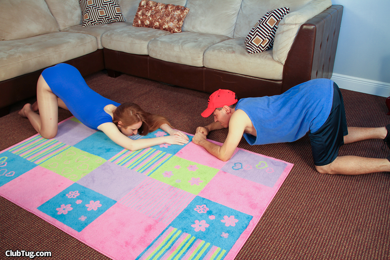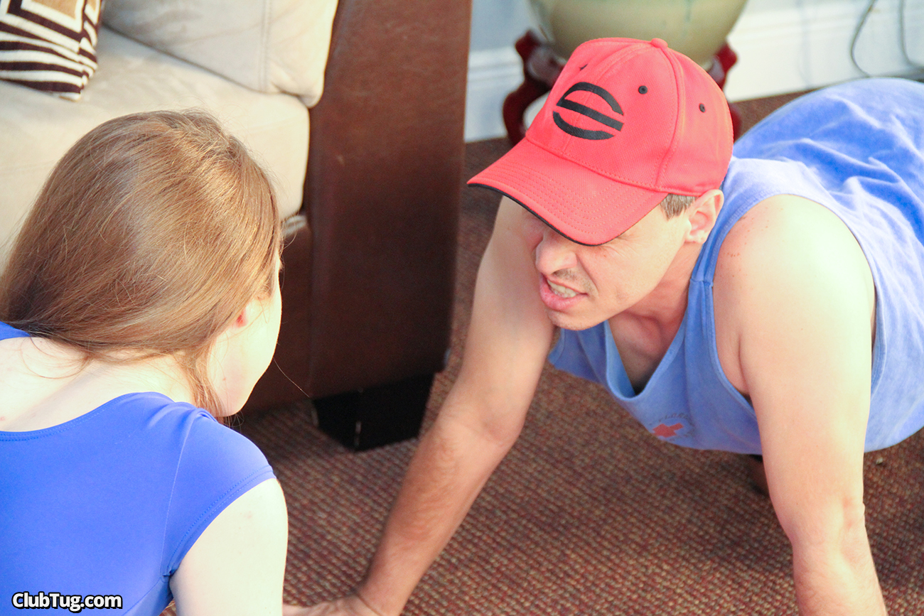 Knowing that cute Sofie is a fit girl, Mr Johnson asks her to help him workout. The sexy babe calls him at her place to show him some exercises, but the slutty teen has a new style workout in mind, which includes stroking Mr Johnson's cock. Sofie gets naked and jacks off his dick on the floor of her living room, until he releases his cumload on her hand.