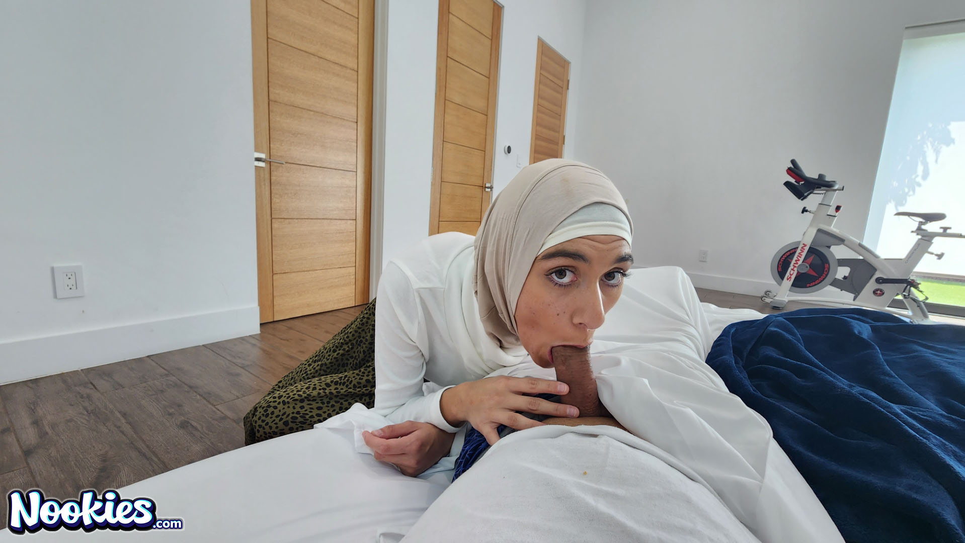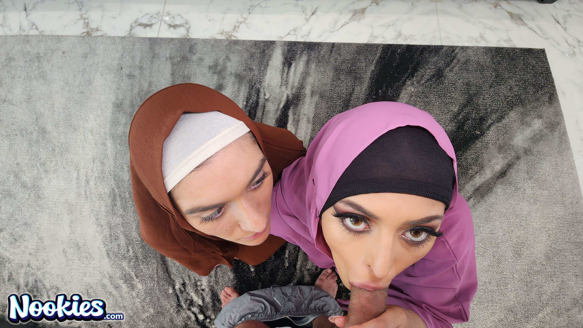 Sophia Leone and Aubrey Babcock in the same room, on the same bed wearing Hijabs? What could they possibly be up to? The horny siblings meet up to teach Allen a lesson. "What if we just tried sitting on it?" That a phrase he hears when his auntie Aubrey and Sophia compete for his cum.