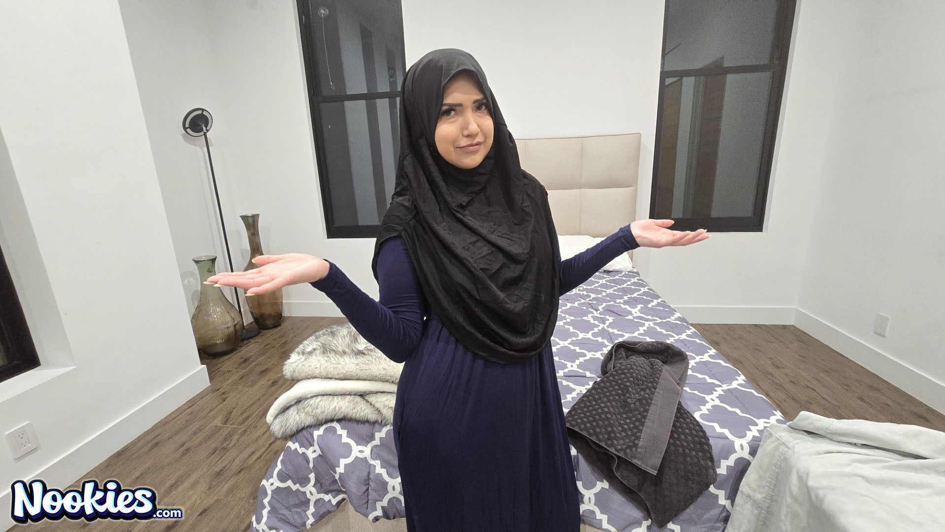 Maribel Lopez is quite a sweet and sexy woman who loves to please her man. She also honors her heritage by dressing in the traditional hijab and chador garb that covers her from head to toe. So you can imagine the conundrum she faces when he brings her home some very sexy and revealing lingerie to try on. Although she doesn’t seem quite sure about putting it on at first, we have a feeling that with a little bit of convincing, as well as satisfying her own curiosity, it might be enough for her to give her man exactly what he wants.