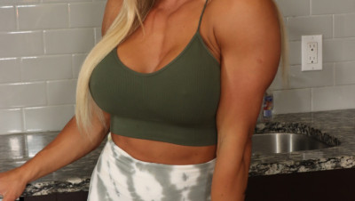 Denise Anders loves being in control and today she is going to have some fun with you. That muscular babe sensually strokes your cock. She's so good our man almost blows his load the second she caresses his cockhead.