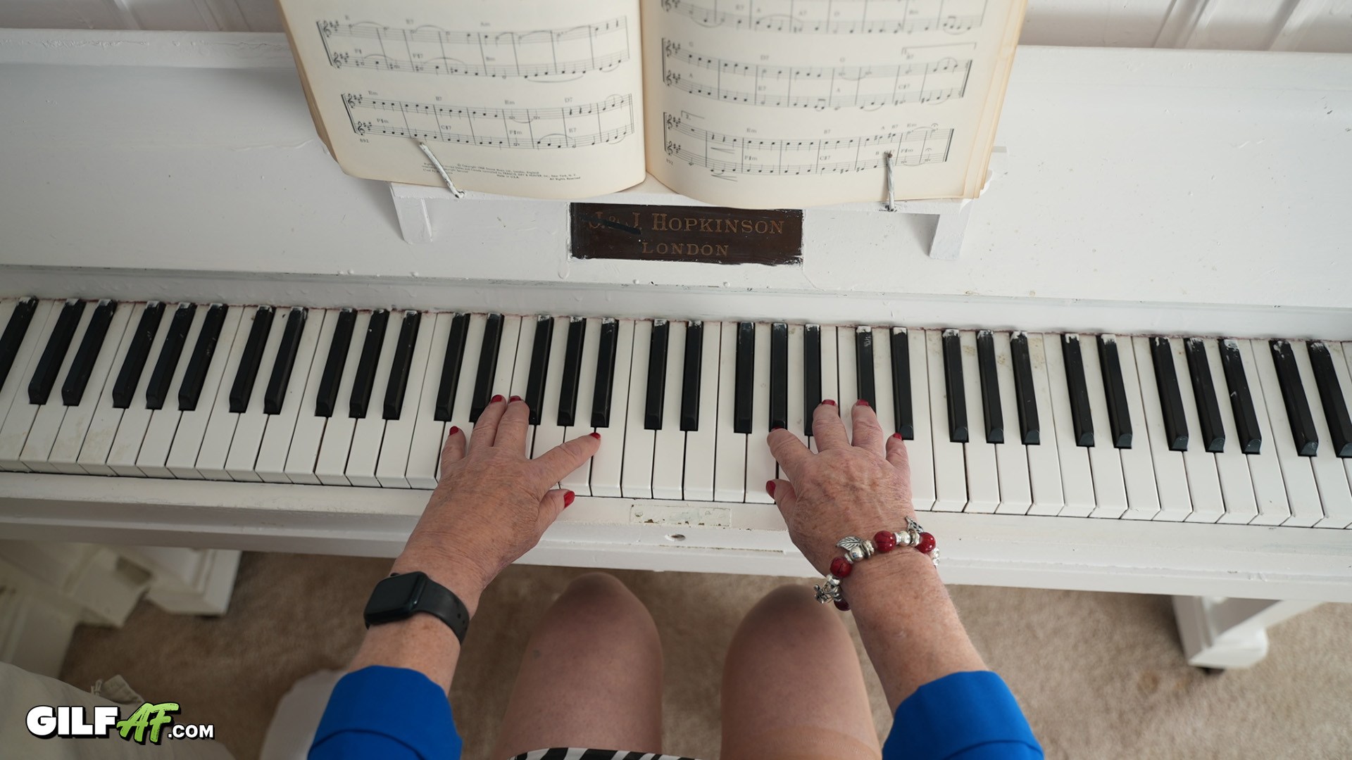 Piano lessons with step-granny? Sounds pretty boring until you watch this super exciting new video where Benjamin ended up fucking her instead. Its pretty clear that Benjamin isn't interested in boring piano lessons. Claire tried to train him but since shes wearing a super sexy top exposing her tits. Benjamin pulls out his cock and starts jerking off at the sight. Its thrilling to watch especially as the two of them tear into each other and he gives her a messy creampie.