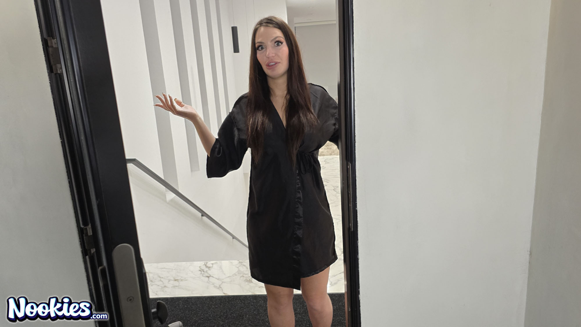 When your neigbor is porn legend Alexa Payne you do whatever it takes to fuck her. For our man this involves peeping on her while taking a shower. He does it every night but this time he gets busted. Alexa spots the creep and notices his hard cock. She takes mercy on him and instead of scolding him she turns his dreams into reality. Alexa invites him inside and proceeds to suck him off before letting him fuck her and give her a big messy creampie. Its the stuff of wet dreams and Alexa Payne sure knows how to roll out the welcom mat in this new hardcore Nookies originals scene.