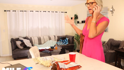 Blake completely trashes his stepdad’s sister’s house while she’s away, leaving food, clothes, and trash everywhere. When she returns, she’s furious and wastes no time putting him in his place. What starts as a scolding quickly becomes a lesson he won’t forget. Stevie catches him jerking off on her couch and notices his hard and big his dick is and decides to give him a hard lesson he wont soon forget.