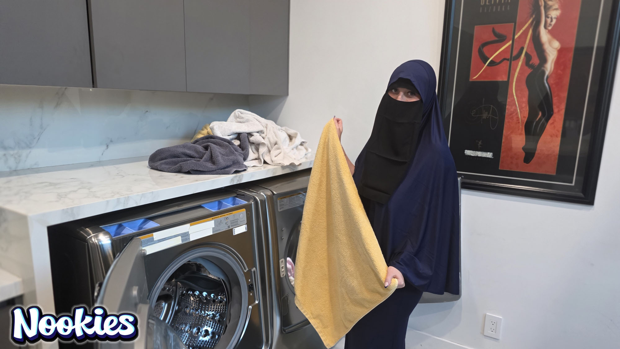 A traditional wife in a hijab slowly embraces her new American life - one cumload at a time! Aleska does laundry and exposes her massive all all-natural boobs, tempting her husband for a balls deep fuck.