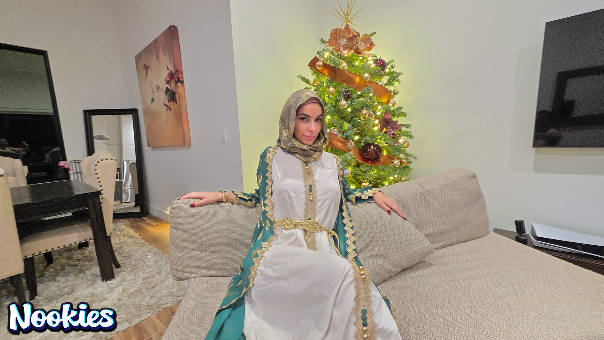 A lonely college student with no place to spend Christmas is invited to dinner by his hijab-wearing professor Mrs. Valencia. She complains about her husband always being away and the conversation turns intimate. What starts as a kind gesture ends with them crossing a line into a balls deep fuck for the stunning hot wife professor and ends with a messy facial.