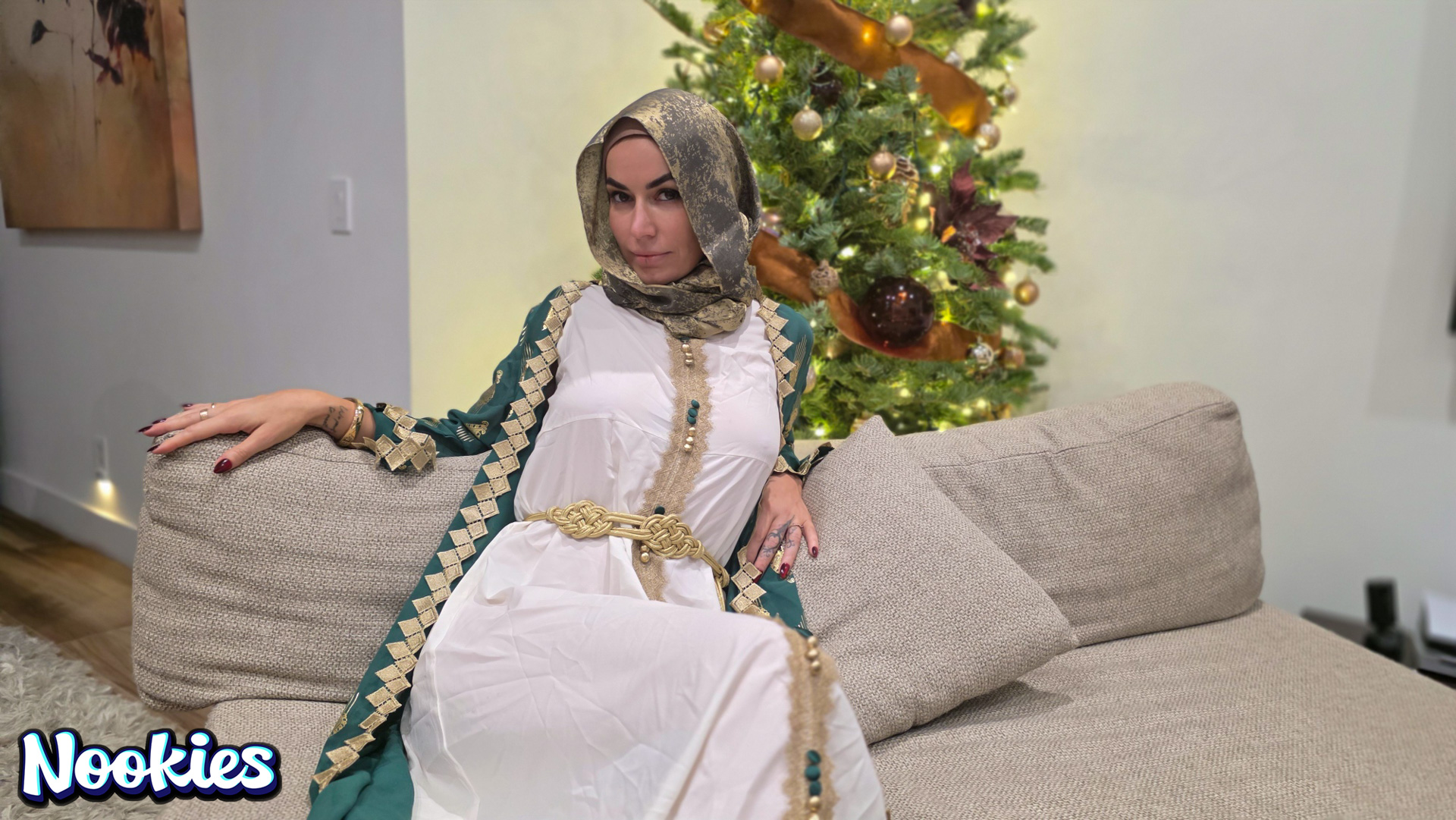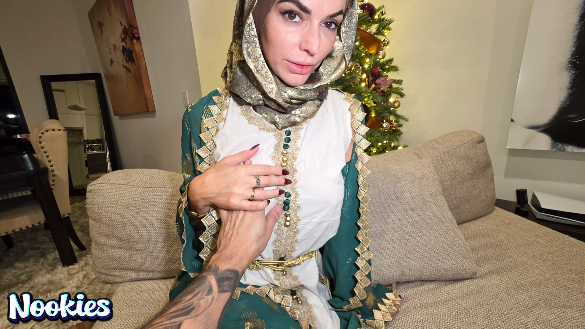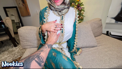 A lonely college student with no place to spend Christmas is invited to dinner by his hijab-wearing professor Mrs. Valencia. She complains about her husband always being away and the conversation turns intimate. What starts as a kind gesture ends with them crossing a line into a balls deep fuck for the stunning hot wife professor and ends with a messy facial.