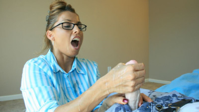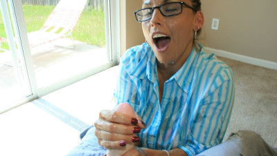 While her hubby is away on business, Mrs. Stacie Starr stops over Jimmys house to confirm all the rumors she has been hearing. "Cmon big boy, let me see what you got!" Says the horny milf. She begins to get excited at the sight of Jimmys big cock as she spits and slobbers until she is finally blasted with buckets of cum!