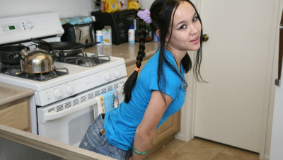 Asian teenager Amai loves to stroke and suck on big cocks, especially Joey. She's hers that Joey spurts monster loads and Amai Liu wants to see for herself. The tiny teen strokes and sucks on hid cock until her face, tits and ass are splattered with jizz.