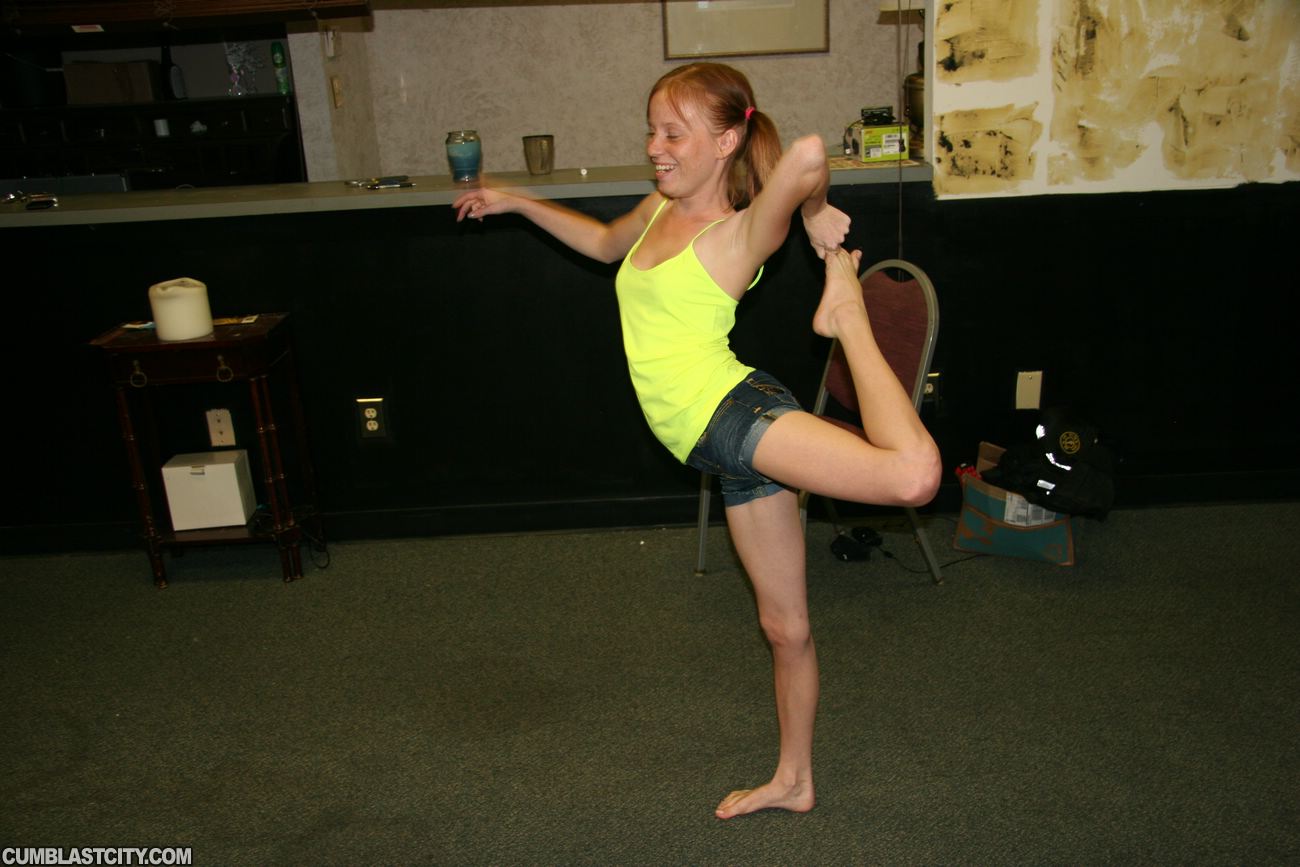 Young teen slut Alyssa Hart catches a peeping tom wanking his wood while she is doing gymnastics. When the teen sees him jerking off to her, Alyssa pulls him and sits him down on a chair where she proceeds to milk him dry. Little does she know he can spurt mega sized loads and gets a big cumshot to her face.