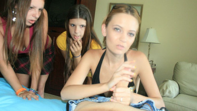 Innocent teens Zoe and JC have never even seen a cock in real life. But when Michelle starts talking about how she jacks off her man....the two teens get curious. Michelle decides to teach them a handjob lesson with a lucky stranger. But when he wont cum...the two teens join in to help her out. "OMG I wanna see this guy jizz so bad!"