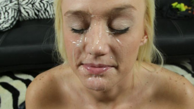 Blonde teen Molly gets busted stealing her roommates money. As punishment the teen is made to make his cock burst. Molly spits shines his rod and jacks him off. "Please don't call the cops" says Molly as his cock finally erupts all over her face.