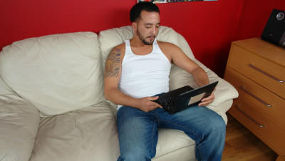 Joey is jerking his cock to his favorite porn. Little does he know that teener Sammy is watching him. When he cant seem to bust his nut, the perverted teen helps him by jacking his big cock and rubbing her wet pussy. Joey blows a massive cumload all over the horny teens face.