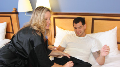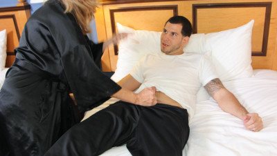Joey loves to beat his big dick when Mrs. West is at work, unfortunately she is arriving early and walks in on Joey beating his cock in his bedroom. Mrs. West is shocked, but not that he is wanking off good and hard, but that his dick is perfect, and her pussy gets wet while watching. She now wants to see him nut, and starts to jerk him off for him.
