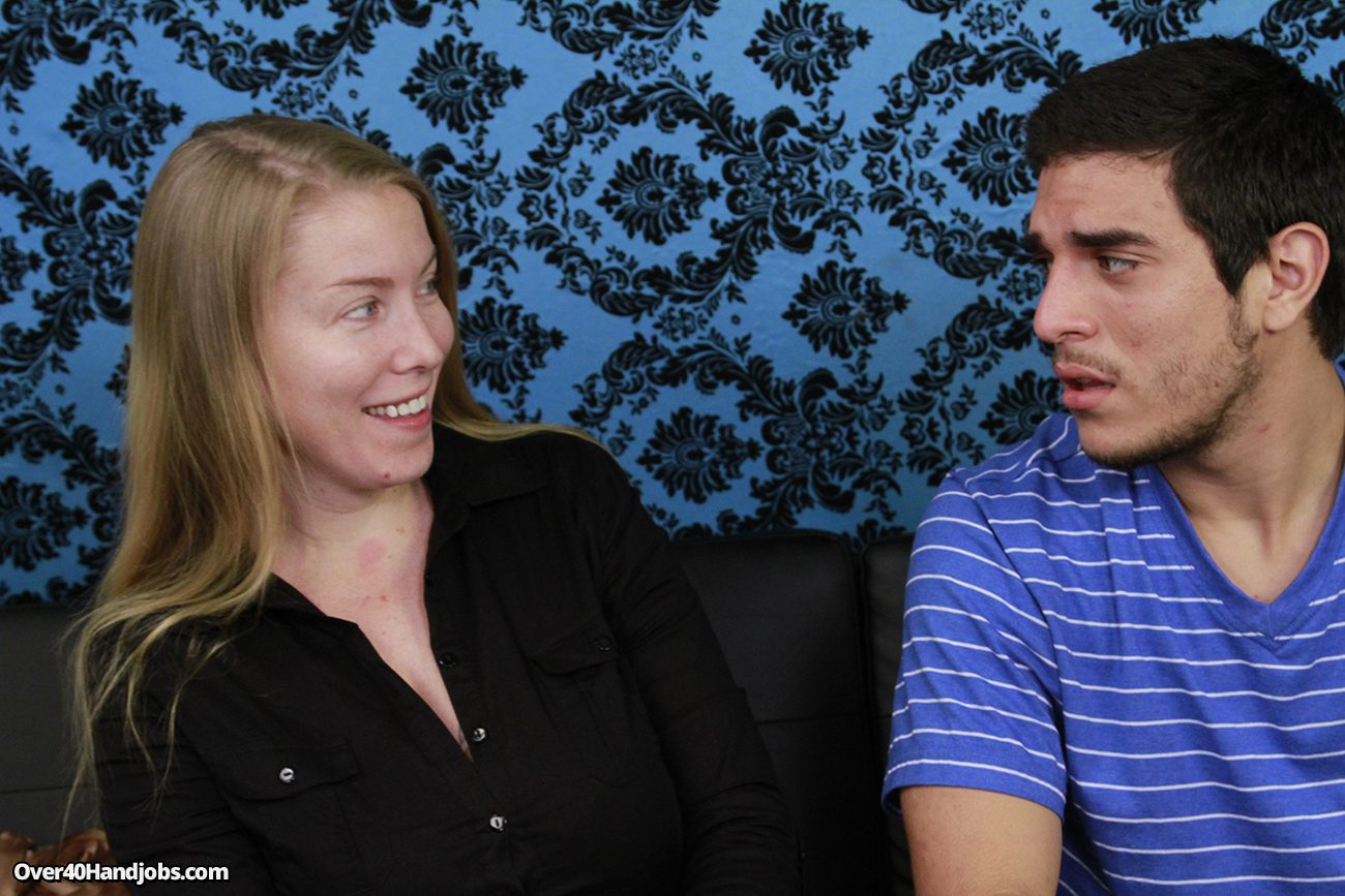Billy accidentally sends his busty step mom Desiree Deluca a text message photo of his huge-sized boner. The slutty over 40 milf seems to like what she saw, after all, his dick is massive. She asks him to stroke his dick so she can watch, eventually she gives in and makes his dick erupt with a monster sized cum spurt by jerking him off good.