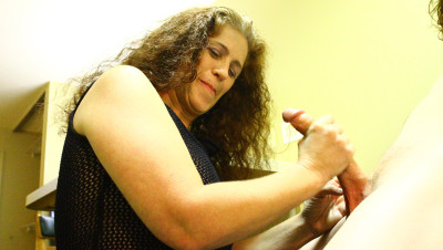 Lisa Brown, a mature horny lady who loves boners, meets Billy, a big-dicked dude. Lisa really likes his huge boner, so she doesn't hesitate to give him a treatment he will remember for along time. She strokes this shift really slowly, and she loves it when he releases his cumload.