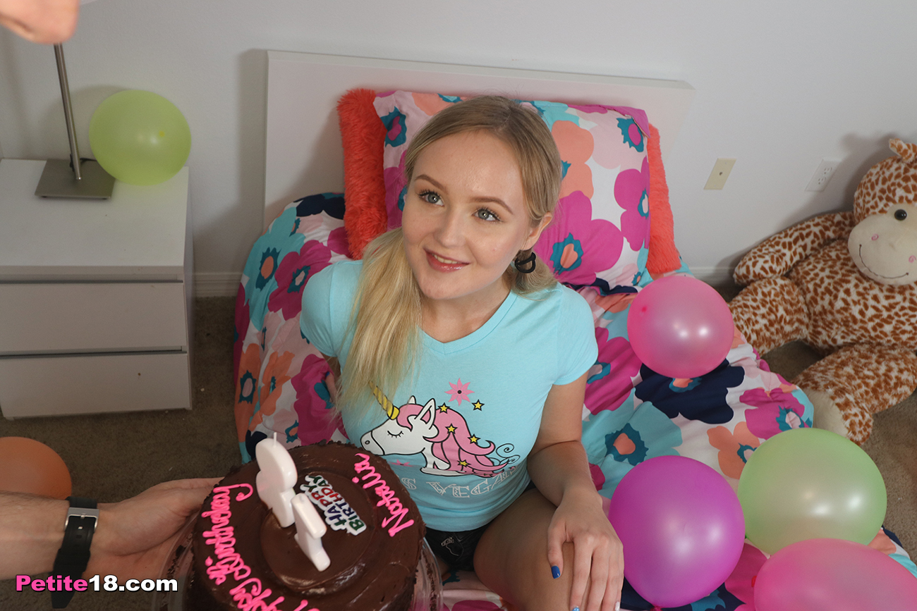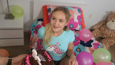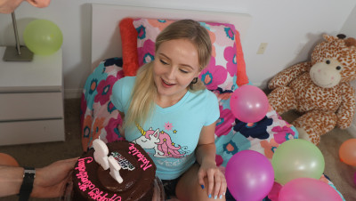 Super cute teen Natalia Queen turns 18 today and gets really surprised when her step-brother comes in with a birthday cake. The best news is that now she can have sex with him and she won't miss the chance! First, the beautiful blonde babe grabs that dude's dick and sucks it big time and then he fucks her tight pussy for good before exploding with cum in her cute face.