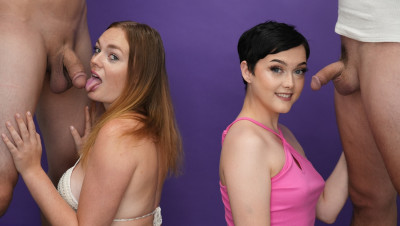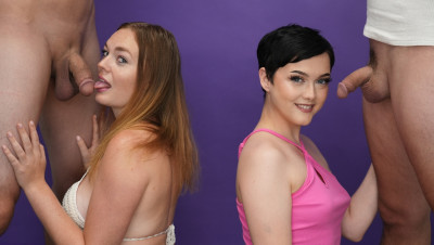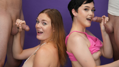 Blowjob challenge. That's the phrase of the day when teens Jade Valentine and Samantha Reigns dropped by the She Reacts studios. The two cute teens can barely contain their excitement as the compete to make the boys cum. Watch the full video to find out who has the best head game.