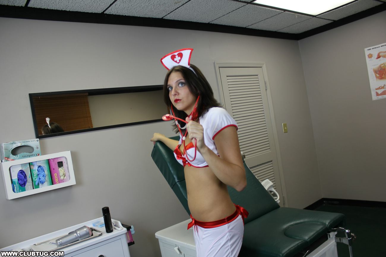 Mike visits the doctors office and ends up having the ultimate handjob fantasy when sexy teen nurse Sadie Holmes appears in a sexy nurse uniform and then strokes his throbbing dick with a fleshlight toy. Mike unloads almost instantly from her sweet hands and tight body.