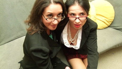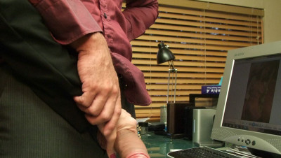 Frank is caught red handed when he gets interrupted whilst jerking off to some sexy pics he found of the two hot office secretaries Tatiana and Persia. The two milfs scold him and yell him, until they see how large his dick is. They decide to help him bust his nut all over the computer screen by sucking and jerking him off together.