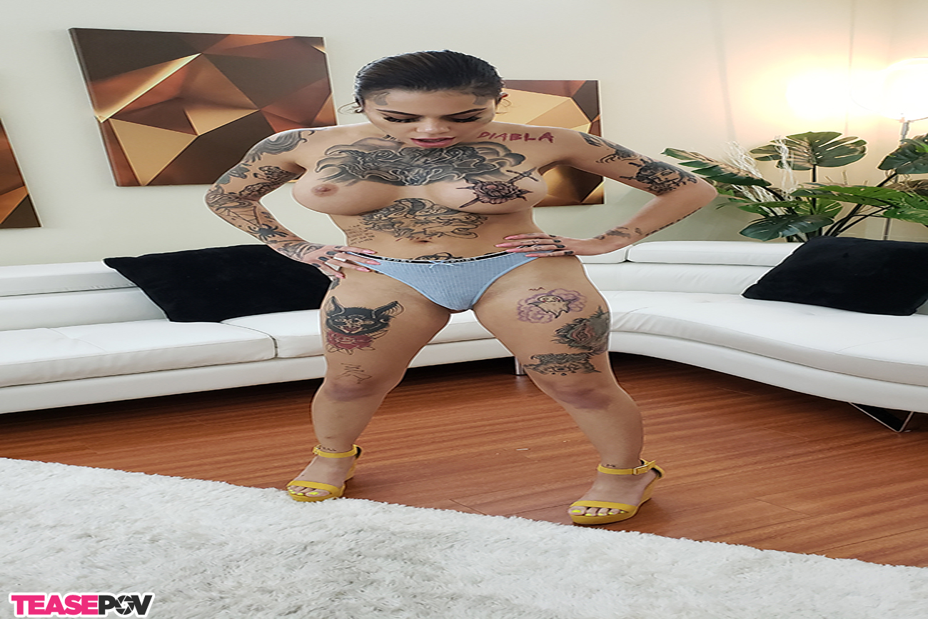 Sinning is a lot more fun with Genevieve Sinn. Except in this new scene from TeasePOV.com, this inked up babe is the one doing all the sinning. Geneveieve feverishly sucks on your cockhead and plays with your balls and she wont stop until you blow your load across her tattoo's face and big huge boobs.