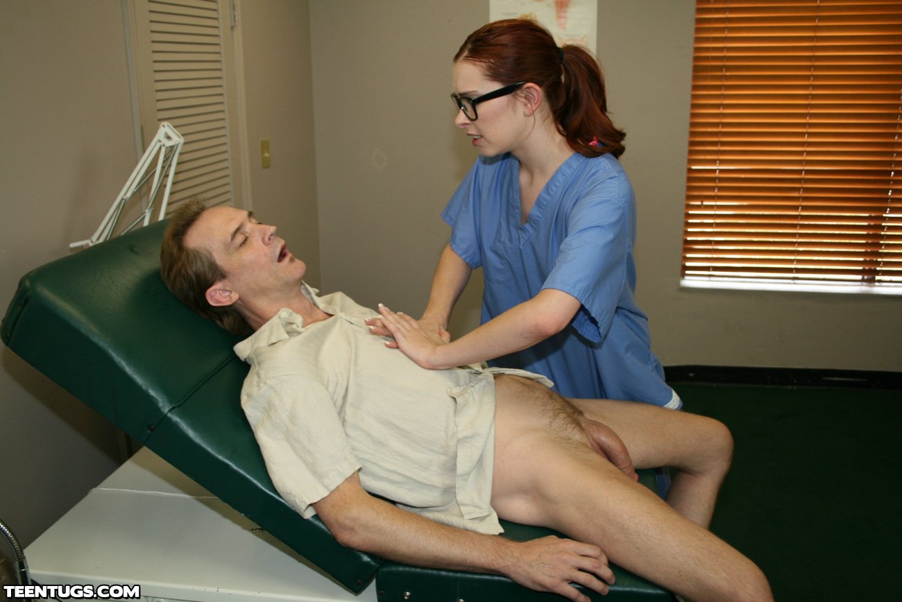 When Clint gets checked out for ED, he is amazed at the sexy nurse Melody in the doctors office. His cock gets immidiatly erect when she walks into the room. But too much blood rushing to his prick makes him pass out. Melody, loving the size of his cock decides to finish him off with a sexy nurse handjob.