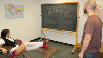 Hot schoolgirl Sadie Holmes loves cocks and she doesn't seem to feel bad about making then spooge. The horny student comes in the classroom waiting for her teacher when she corners him. The hot teener babe jerks him off for good and milks his dick before leaving the classroom.