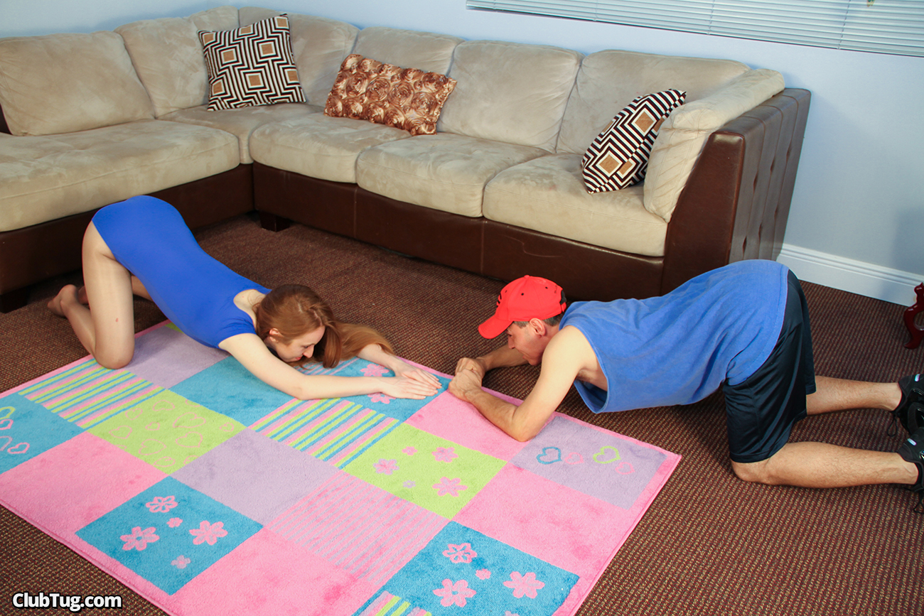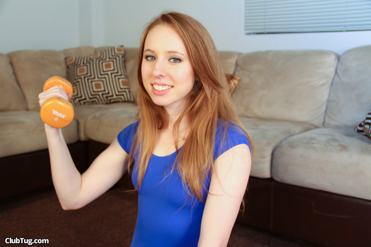 Knowing that cute Sofie is a fit girl, Mr Johnson asks her to help him workout. The sexy babe calls him at her place to show him some exercises, but the slutty teen has a new style workout in mind, which includes stroking Mr Johnson's cock. Sofie gets naked and jacks off his dick on the floor of her living room, until he releases his cumload on her hand.