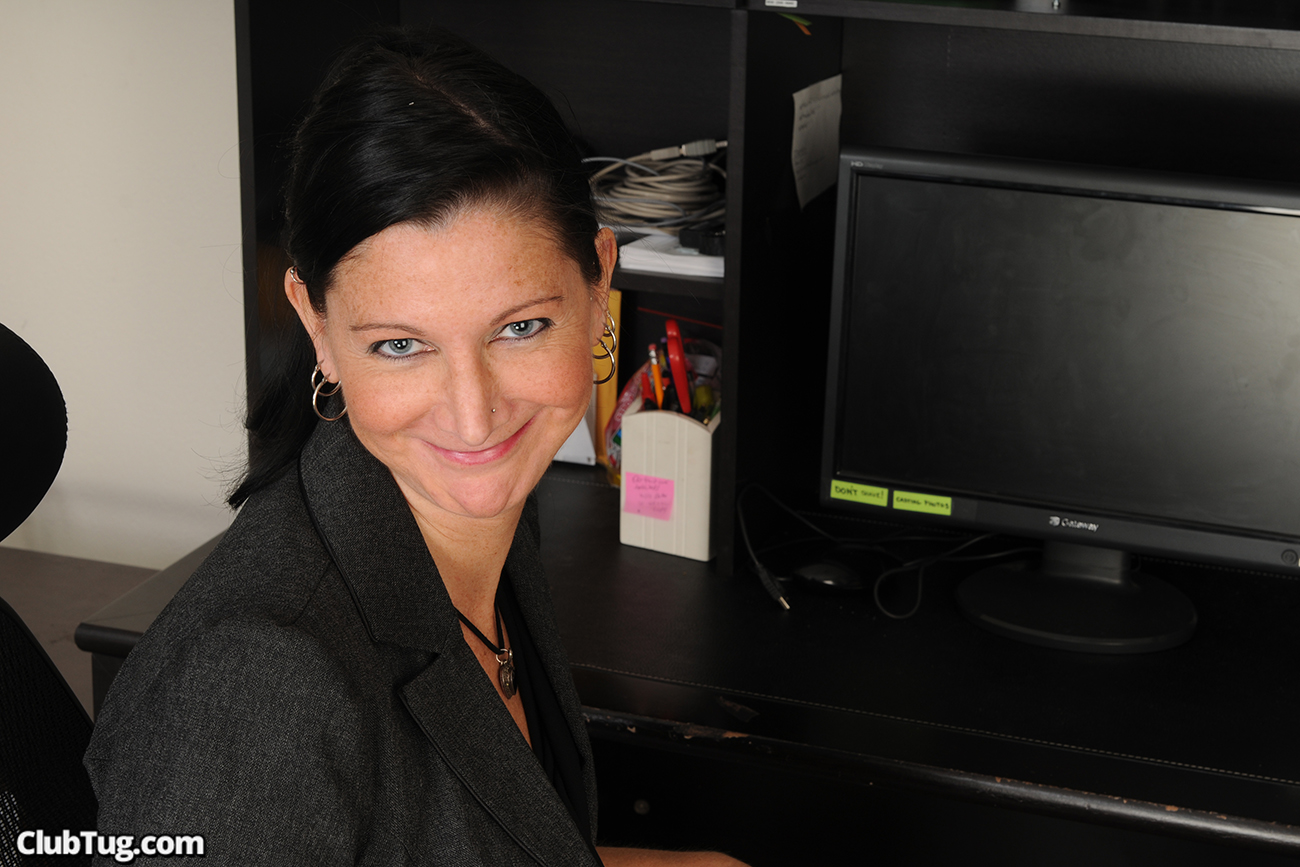 Kelly Greens package has finally arrived at her office. The naughty milf has ordered a lube. Kelly decides to make a live demonstration for him, so she takes her clothes off and uses her new lube to jerk his boner. She is sitting on her knees, giving him some great cock strokes, until she gets splattered with salty jizz.