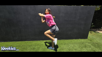 Jade Luv is the kind of chick who always gets what she wants. Right now she wants to hook up with her stepdad. The Asian hottie is horny as fuck because she hasn’t gotten laid in a while. Before getting dropped off she exposes her little pussy in the car - this excites him in a big way. He can't believe the nerve of her exposing herself like that. They train for softball and practice but she's hella nervous. He knows just how to make her relaxed. She spreads her pussy but she's too focused on his cock and an epic creampie ensues.