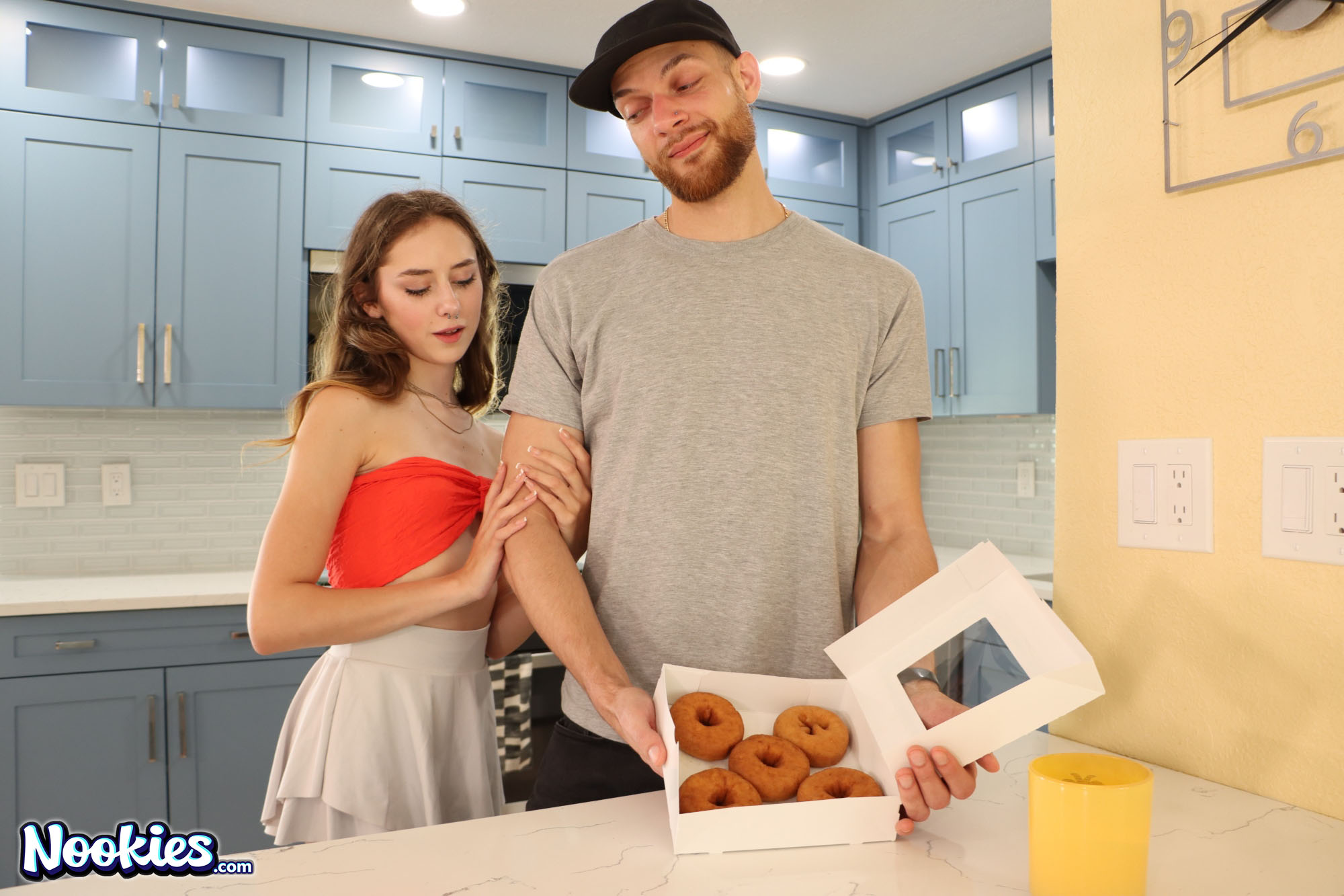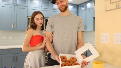 On his food cheat day, Cali decides to order some donuts. He wants 2 chocolate dipped, 2 birthday cake, and 2 glazed. When the order is delivered, he notices one of the glazed donuts is missing the actual glazing. After bringing it to her attention, Daisy Fox finds a fun and creative way to decorate the plain donut with his very own special cum glazing.