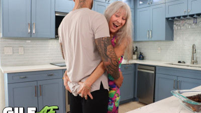 Who doesn’t love a home cooked meal? Especially one prepared and made with love by a rather doting & amorous Leilani Lei. While he is very appreciative of the dinner she is making, he is still quite surprised by her unannounced visit. However, what is even more surprising is how “affectionate” Leilani is towards him. But who is he to say no to a home cooked meal and a hot, steamy fuck session with a granny who is hot to trot?!