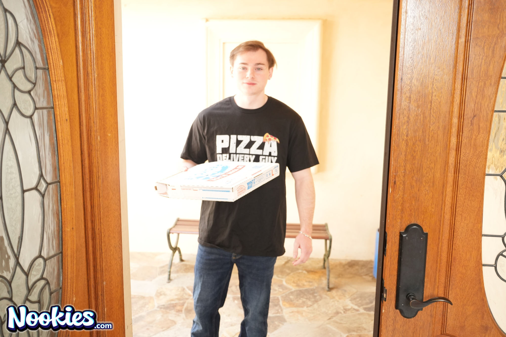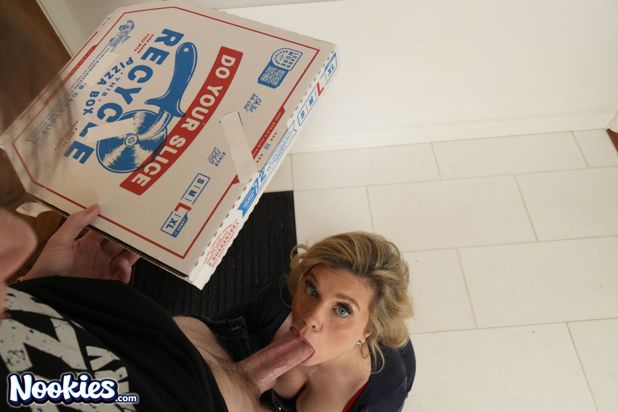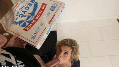 Anthony arrives at Andie Anderson's door with a late pizza, and she rips into him, furious at the lousy service. But her anger quickly flips when she notices the bulge in his pants, and the tension between them explodes into raw lust. She drags him inside, and the scolding turns into a rough, wet, no-holds-barred fuck right on her bedroom floor and blows his load accross her amazing tits and face.