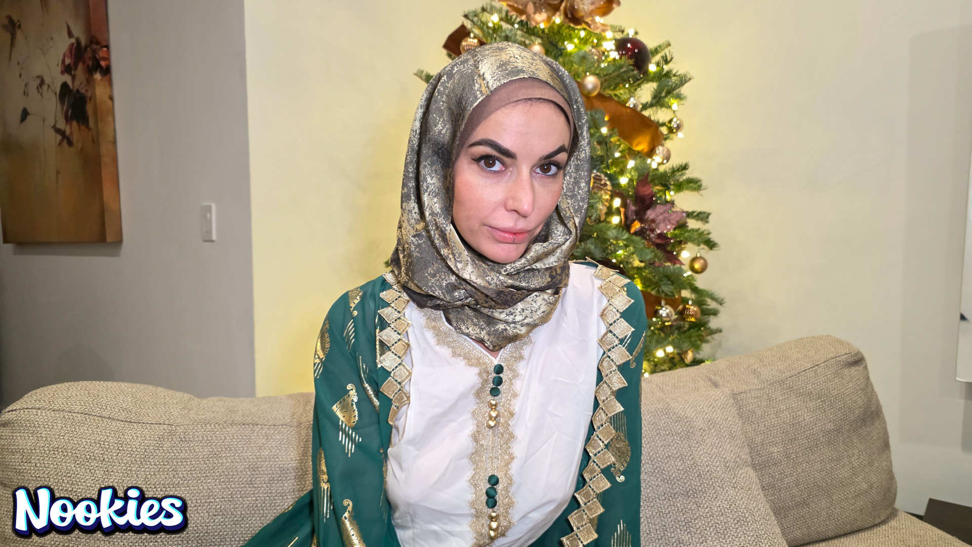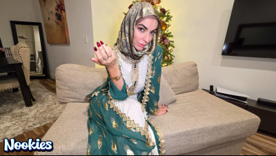 A lonely college student with no place to spend Christmas is invited to dinner by his hijab-wearing professor Mrs. Valencia. She complains about her husband always being away and the conversation turns intimate. What starts as a kind gesture ends with them crossing a line into a balls deep fuck for the stunning hot wife professor and ends with a messy facial.