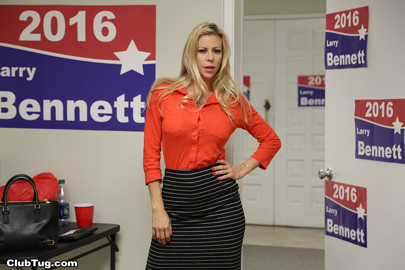 Hot off the campaign trail, young boy Joey gets caught playing with himself in the office. Milf Alexis Fawx takes notice and helps the young man concentrate by joining in and letting him fuck her big tits while she milks him dry with her dirty talking and sensual cock teasing.