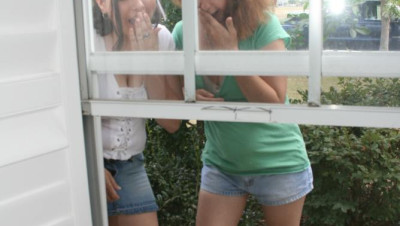 "Ok, we can help you jerk your cock Mr. Franklin, but we aint gonna swallow the sticky stuff thats gross, oh my gawd!" Says two curious teens Karla and Carmen as they spot the neighborhood perv jerking his cock!