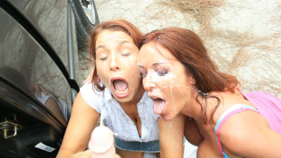 Local perv Matthew is jacking off in his truck while watching Stacie and Rachel from afar. As he is pumping his cock at the sight of the two sexy moms, he is caught. Rachel cant stop staring at his huge cock. "So...you want us mommys to help you jack off you pervert?!" Stacie and Rachel take turns sucking and slobbering all over his cock. As he blasts them in the face with his mega load, Rachels husband pulls up. "Oh, Hi honey...we were just, uh, checking out Matthews new truck"