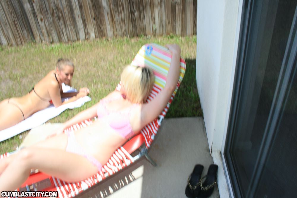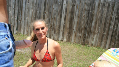 Hot amateur teen Leighla and her step mom Mrs. James are laying out when I whip out my monster shlong in front of them both. Mrs. James takes notice and decides to suck and jack me off all over Leighla while she is sun tanning."Oh yeah shoot that fucking load all over her!" Says the horny mom Sara James.