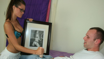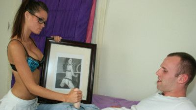 "OMG I cant believe your jerking off to my picture!" Teen Makenna catches Joey jacking off to her sexy photo in her bedroom. Makenna is very angry but once her eyes turn to his huge cock, Makenna decides to teach the young man a lesson by sucking and jacking off his cock until she, and her sexy picture are covered in jizz.